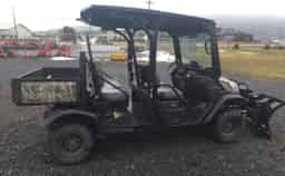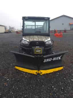 USED 2023 KUBOTA RTV-X1140RL-A, SN: A5KD2GDBHPG061726, CAMO, ATV TIRES, BED LINER WITH 44.3 HOURS. ALSO A 2023 SNO-WAY RTV PLOW POWER PACK & BLADE, 6′ V PLOW WITH WIRED PRO CONTROL II.