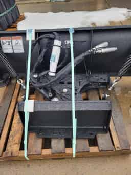 New. Erskine snow blade for Kubota SCL1000 or other brands of stand-on skid loaders. Couplers, hoses, angle cylinder, skid shoes, and steel cutting edge included.