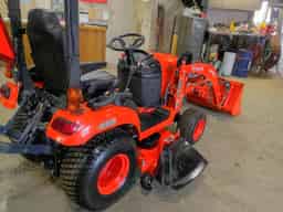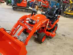 2022 Kubota BX2380V-1. LA344S front loader with 2 lever quick coupler and 48″ quick attach bucket. R3 turf tires. 54″ mid mount mower. 95 hours.